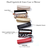 This sleek double lipstick case with mirror holds lipsticks, lip gloss, and lip liners — the modern touch-up essential.”